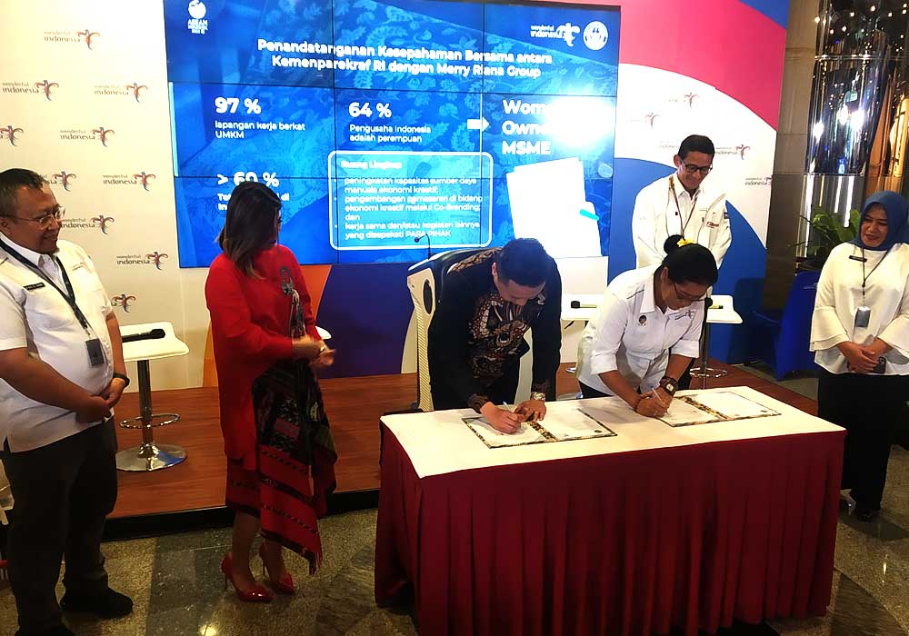 Pariwisataindonesia.id | Menteri Pariwisata dan Ekonomi Kreatif Sandiaga Uno dalam acara “The Weekly Brief with Sandi Uno” di gedung Sapta Pesona, Senin (27/2/2023) menyaksikan langsung acara penandatanganan Kesepahaman Bersama antara Kementerian Pariwisata dan Ekonomi Kreatif dengan Merry Riana Group.