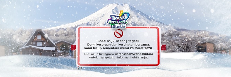 Trans Snow World Bintarao terletak di Jalan Professor Doktor Satrio, Pondok Jaya, Kota Tanggerang Selatan, Banten. Dengan membeli tiket seharga 225 hingga 300 ribu, Sobat Pariwisata bisa nikmati suasana salju layaknya di resort ski.Â