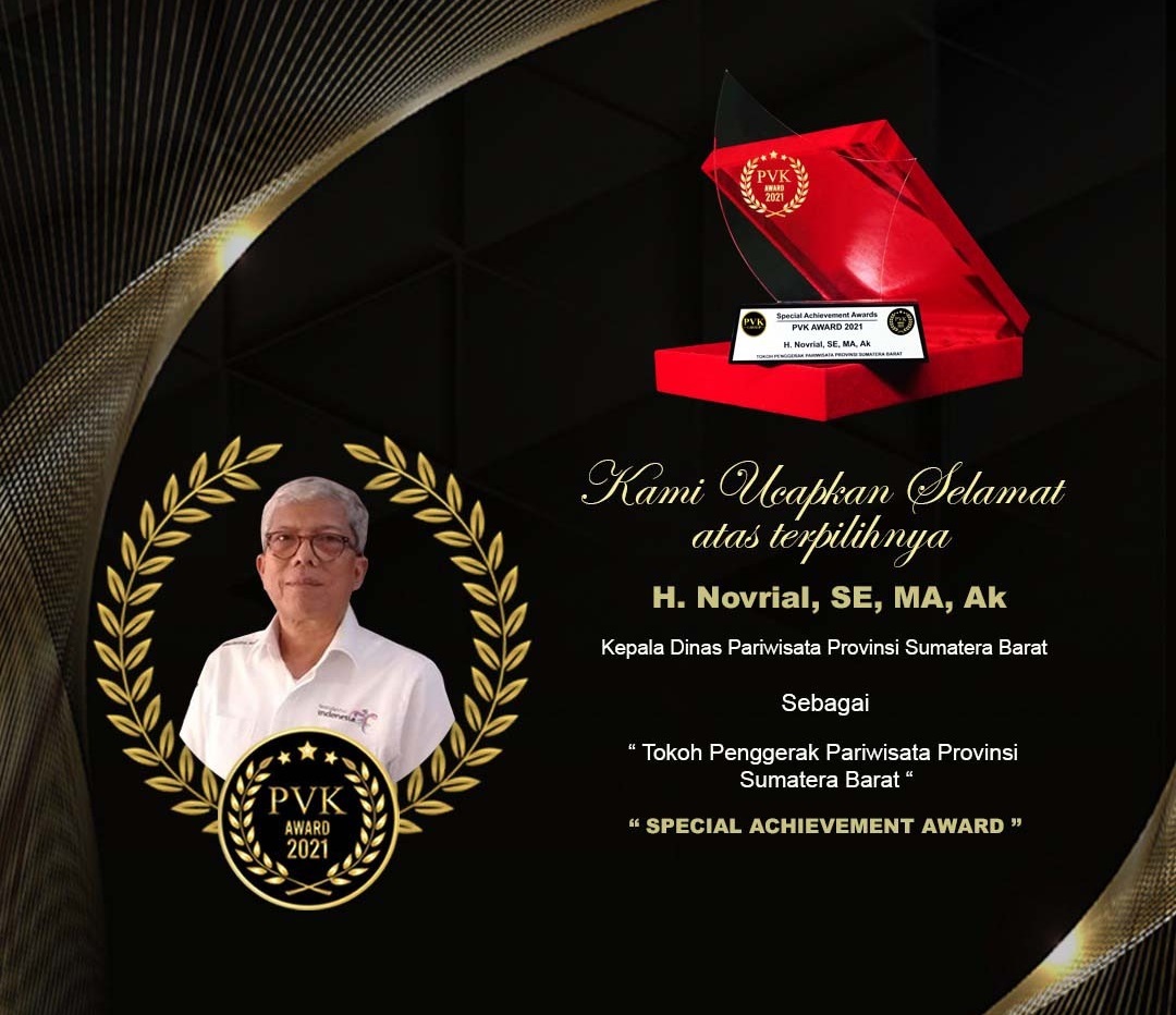 - H. Novrial, SE, MA, Ak., memperoleh anugerah penghargaan PVK Award 2021 untuk kategori Tokoh Penggerak Pariwisata Provinsi Sumatera Barat,