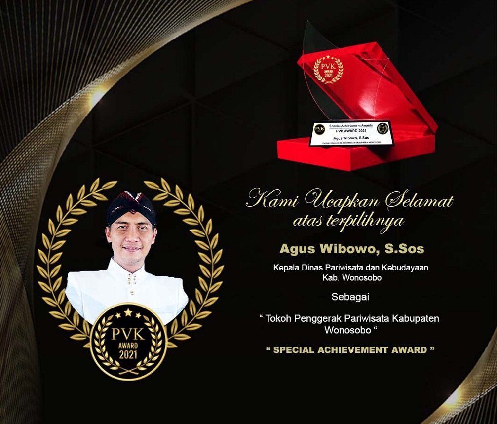 Kadispar Provinsi Sumatera Barat, Novrial (Dok.Panpel.PVK Award 2021) - Agus Wibowo, S.Sos., memperoleh anugerah penghargaan PVK Award 2021 untuk kategori Tokoh Penggerak Pariwisata Kabupaten Wonosobo,