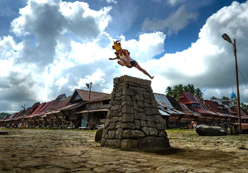 Melompati batu dengan ketinggian tadi bukan hal yang mudah, ya Gaes ya. Bahkan kalo gagal, ada resiko cedera ringan hingga patah tulang. Makanya, para pemuda Suku Nias Selatan sudah berlatih sejak usia 7 tahun. Mereka menggunakan tali, anggota tubuh teman, hingga susunan batu dengan ukuran yang lebih kecil.