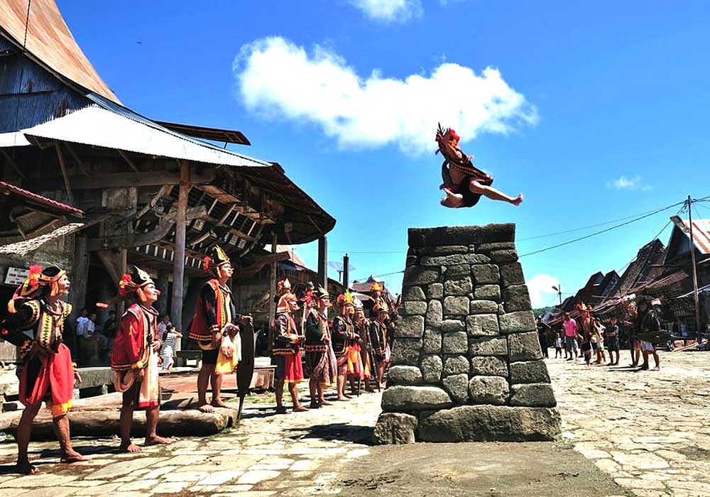 Namanya fahombo atau hombo batu atau lompat batu Suku Nias. Lo pasti udah enggak asing dengan tradisi yang satu ini, kan? Selain pernah menjadi gambar di uang pecahan seribu lama, fahombo juga menjadi tradisi yang sudah mendunia. Banyak wisatawan baik lokal maupun mancanegara yang sengaja datang ke salah satu destinasi Pariwisata Indonesia yaitu Nias untuk menyaksikan tradisi ini.