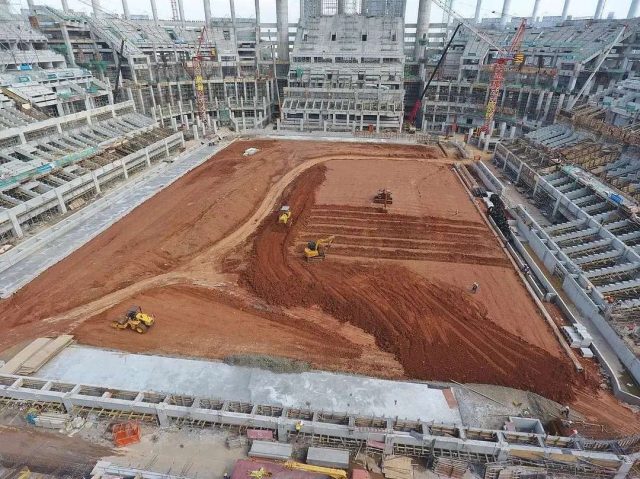 Oleh karena itu, pengerjaan menjadi tidak sederhana, termasuk harus didahului dengan ujicoba pemasangan rumput. Ia mencontohkan, sebelum digelar rumput, lapangan utama dibuat batu split dan di bawahnya banyak sekali jaringan utilitasnya.