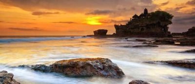 Keunikan utama wisata Tanah Lot ini adalah adanya pura yang berada di sebuah batu karang besar yang ada di pinggiran laut. Menikmati pesona pemandangan pantai Bali yang khas.