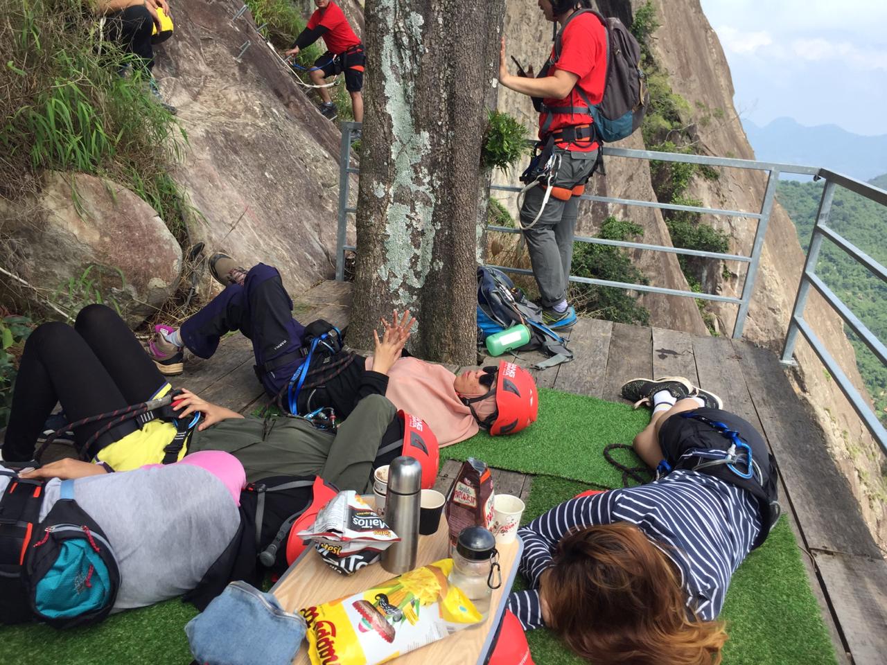 Di 45 menit pertama kaki mulai terasa pegal seiring dengan makin tingginya saya memanjat. Atap basecamp sudah terlihat sangat kecil dilihat dari atas sana, tempat tujuan kita sudah mulai terlihat, sebuah teras di ketinggian yang disebut view deck.