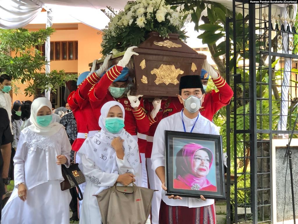 Suasana prosesi pemberangkatan jenazah ibunda Presiden Jokowi, Sudjiatmi Notomihardjo, dari rumah duka di Banjarsari Solo, menuju lokasi pemakaman keluarga di Karanganyar, Kamis, 26 Maret 2020: (Foto:Humas Pemkot Surakarta)