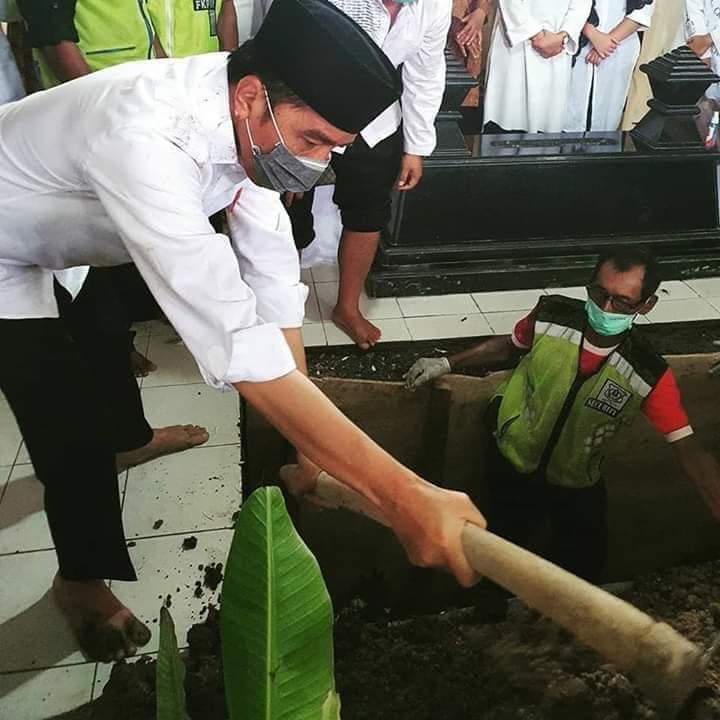 Sementara, beberapa orang lainnya terlihat tengah membantu proses pemakaman. Dalam foto lainnya yang dibagikan Erick Thohir, terlihat Jokowi ikut mencangkul tanah untuk menutup jenazah ibunya yang sudah dimakamkan.