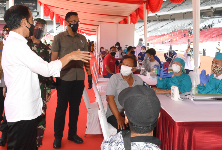Jokowi Tinjau Vaksinasi Massal di Jakarta, Minta TNI-Polri Ikut Sukseskan Target Dua Juta Vaksinasi Terpenuhi